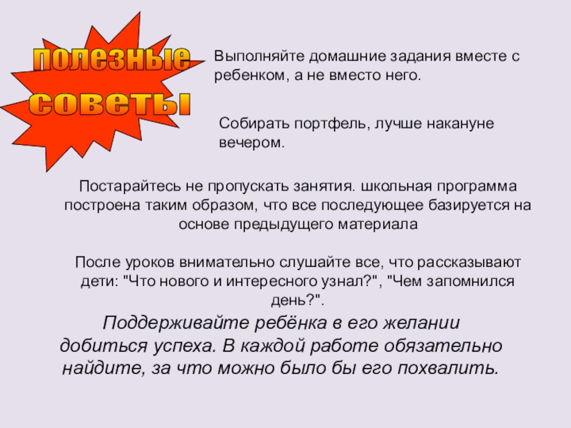 Выполняйте домашние задания вместе с ребенком, а не вместо него.