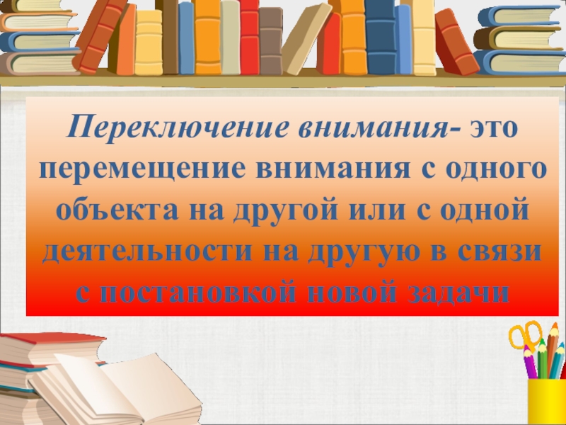 Слайд 8Переключение внимания- это перемещение внимания с одного объекта на другой или