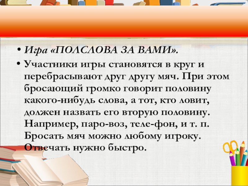 Игра «ПОЛСЛОВА ЗА ВАМИ».