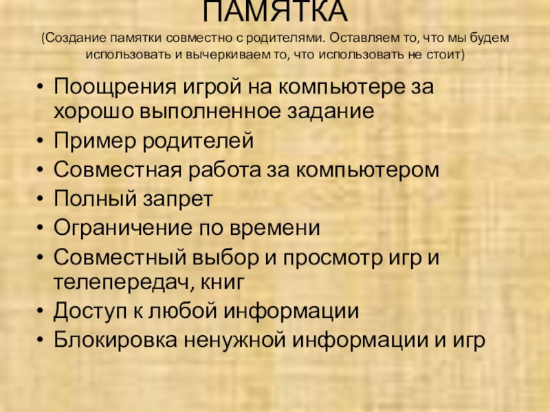 Поощрения игрой на компьютере за хорошо выполненное задание