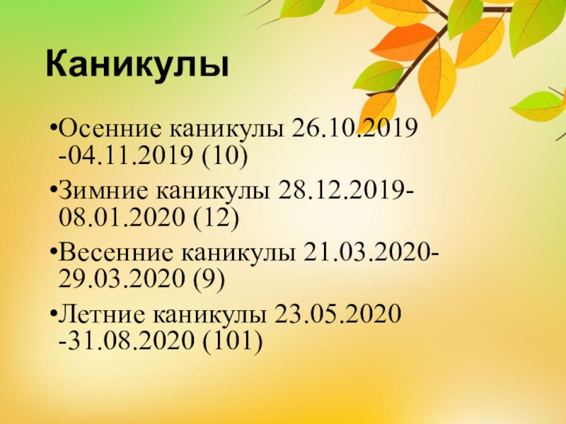 Слайд 4Каникулы