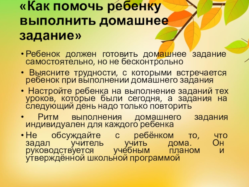 Выясните трудности, с которыми встречается ребенок при выполнении домашнего задания