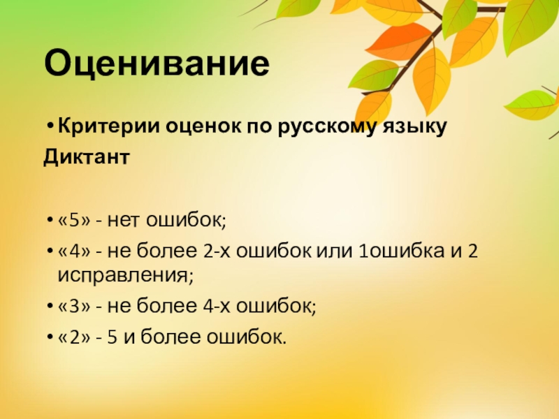 Критерии оценок по русскому языку