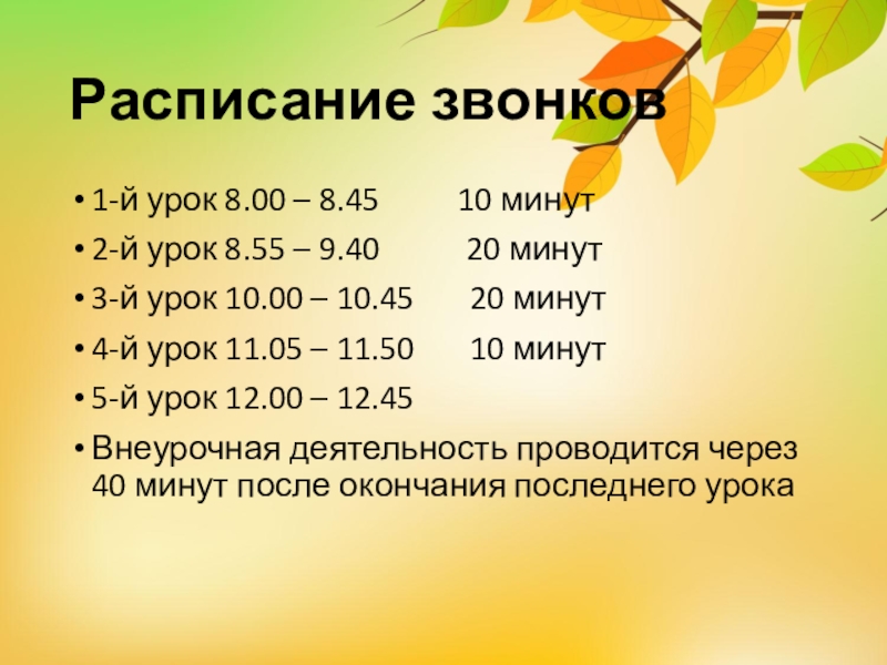 Слайд 5Расписание звонков