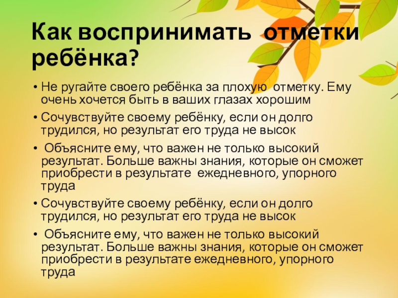 Не ругайте своего ребёнка за плохую отметку.