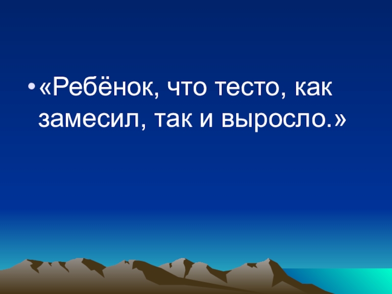 Слайд 2«Ребёнок, что тесто, как замесил, так и выросло.»