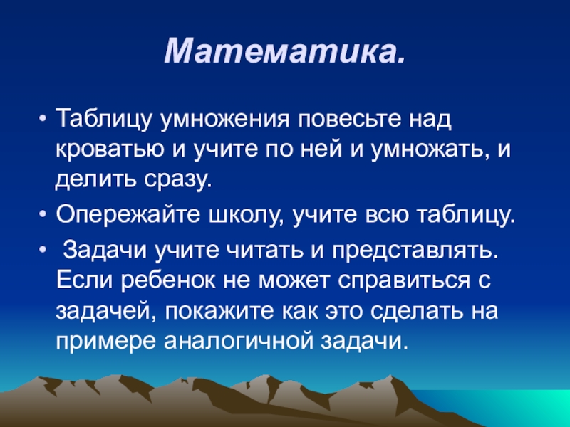 Математика.Таблицу умножения повесьте над кроватью и учите по ней и умножать, и делить сразу. Опережайте школу, учите