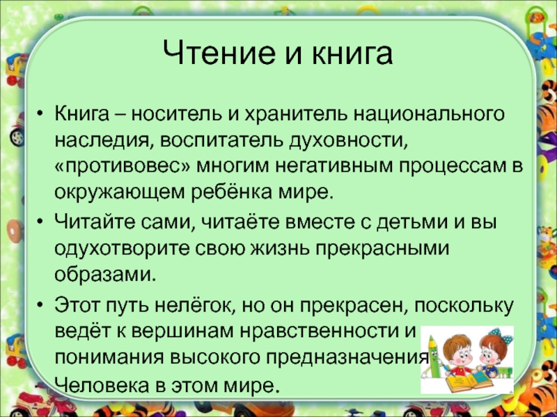 Книга – носитель и хранитель национального наследия, воспитатель духовности,