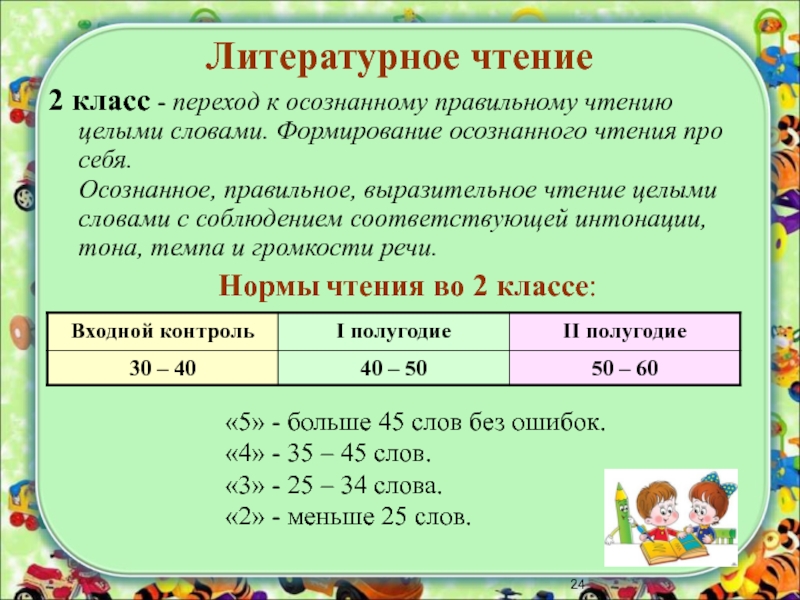 2 класс - переход к осознанному правильному чтению целыми словами.