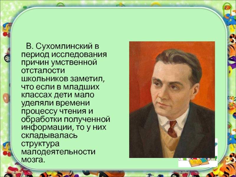 В. Сухомлинский в период исследования причин умственной отсталости школьников заметил, что