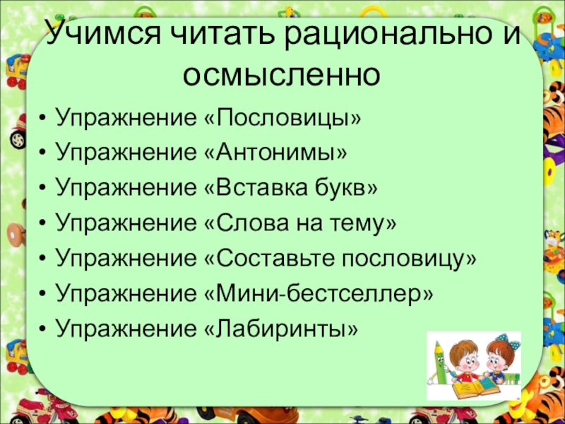 Средняя скорость чтения старшеклассников – 90-100 слов в минуту, студентов – 120-180, специалистов с высшим образованием – 200- 250 (степень усвоения при этом колеблется в пределах 20-60%).