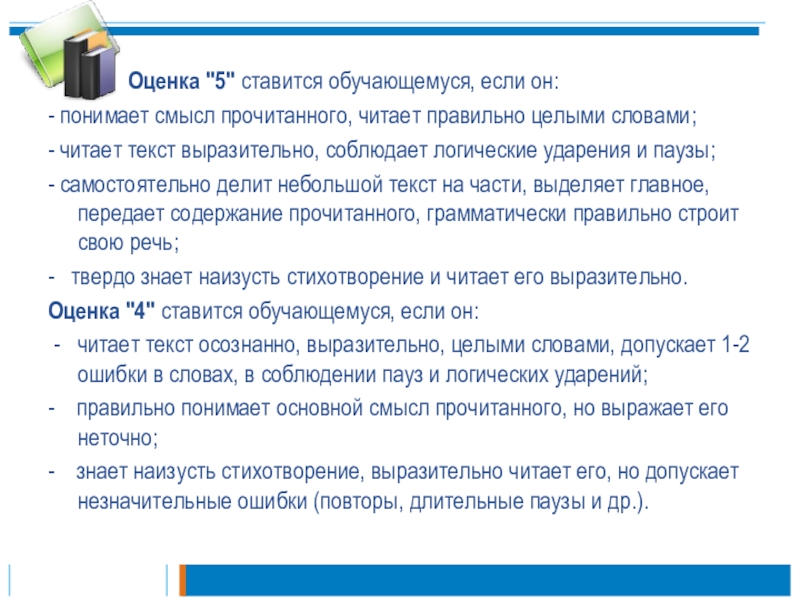 «5» - правильно и последовательно воспроизведен авторский текст, нет речевых