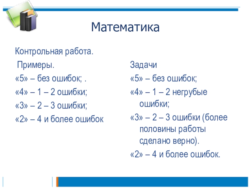 За небрежно оформленную работу, несоблюдение правил и каллиграфии оценка снижается на один балл.