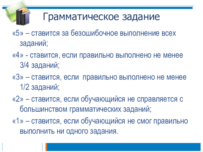 «2» – ставится, если обучающийся не справляется с большинством грамматических заданий;
