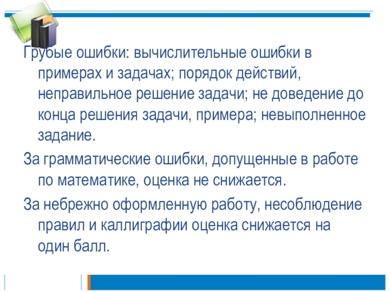 За грамматические ошибки, допущенные в работе по математике, оценка не снижается.