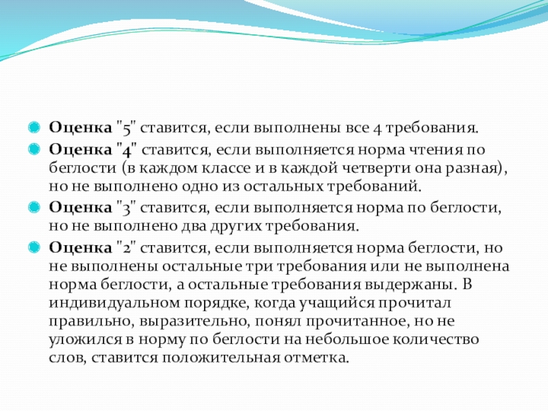 чтения по беглости (в каждом классе и в каждой четверти она разная), но не выполнено одно из остальных требований.