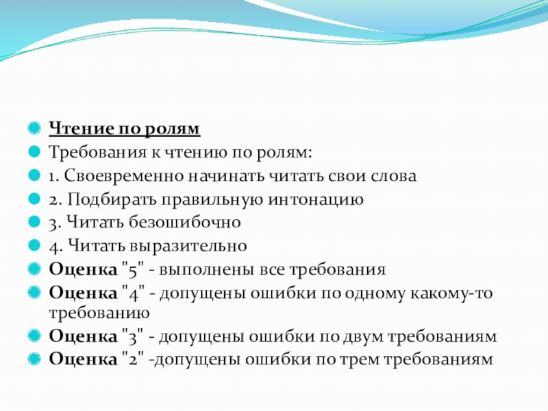 Оценка "2" ставится, если выполняется норма беглости, но не выполнены остальные три требования или не выполнена норма беглости, а остальные требования выдержаны. В индивидуальном порядке, когда учащийся прочитал правильно, выразительно, понял прочитанное, но не уложился в норму по беглости на небольшое количество слов, ставится положительная отметка.