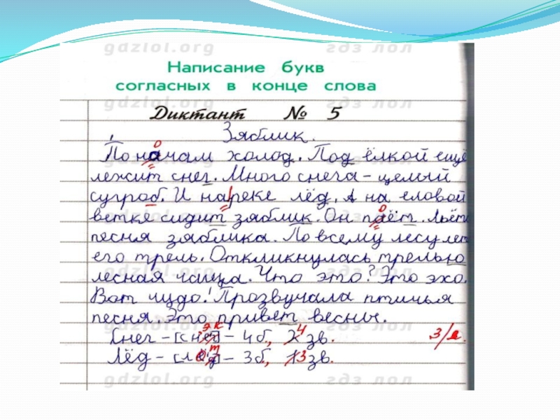 «3» - имеются некоторые отступления от авторского текста, допущены отдельные нарушения в последовательности изложения мыслей, в построении 2-3 предложений, беден словарь, 3-5 орфографических ошибки и 1-2 исправления.