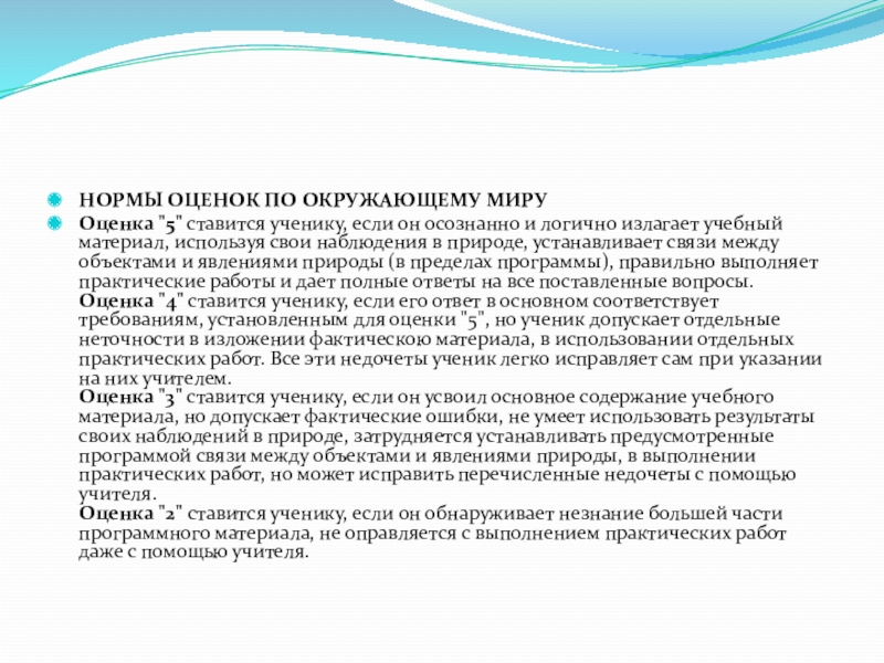 Слайд 33НОРМЫ ОЦЕНОК ПО ОКРУЖАЮЩЕМУ МИРУ