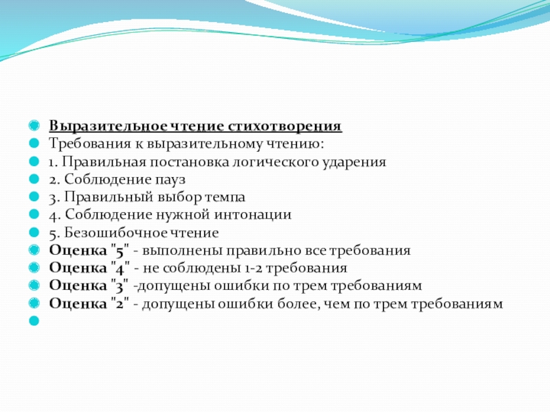 Оценка "5" - твердо, без подсказок, знает наизусть, выразительно читает.