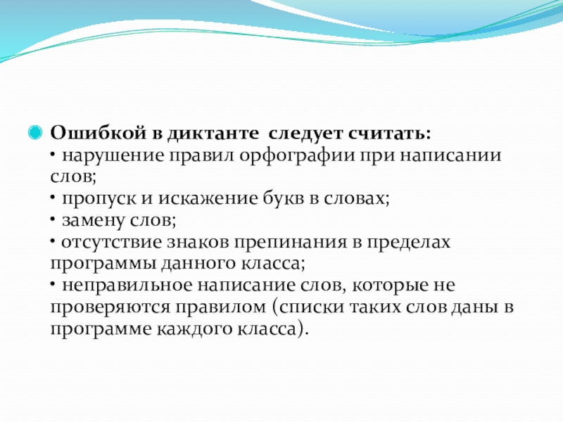 • неправильное написание слов, которые не проверяются правилом (списки таких слов даны в программе каждого класса).