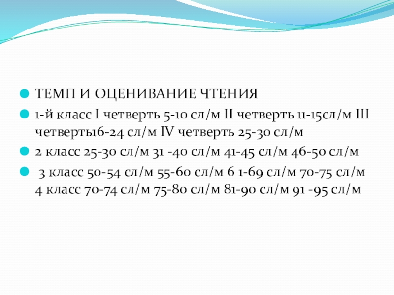 Слайд 27ТЕМП И ОЦЕНИВАНИЕ ЧТЕНИЯ