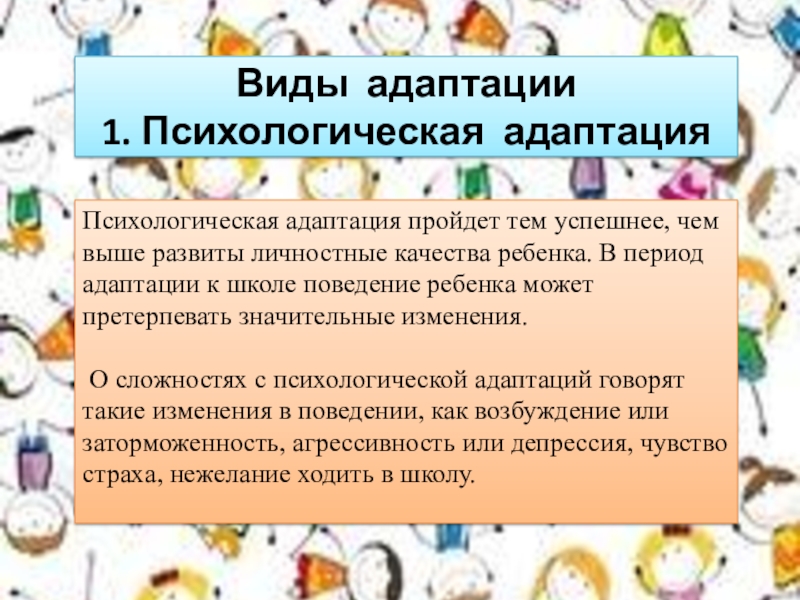 О сложностях с психологической адаптаций говорят такие изменения в поведении, как возбуждение или заторможенность, агрессивность или депрессия, чувство страха, нежелание ходить в школу.