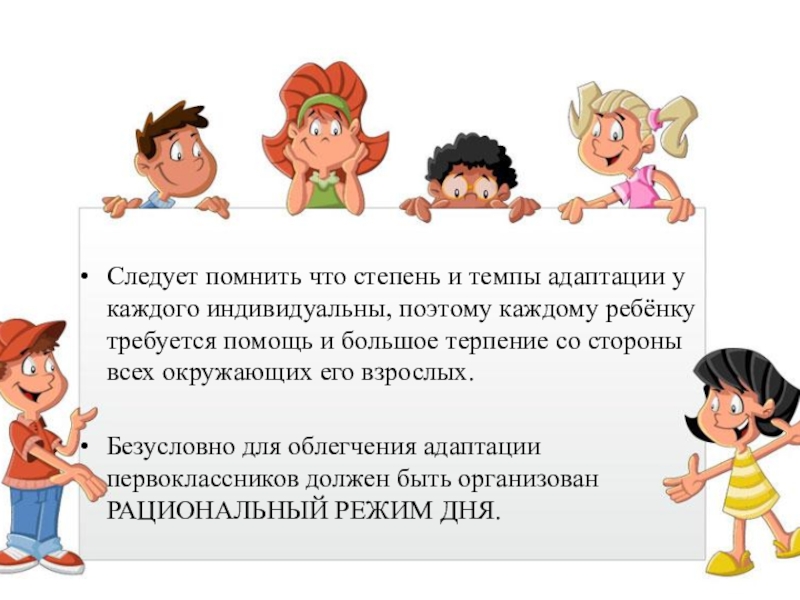 Безусловно для облегчения адаптации первоклассников должен быть организован РАЦИОНАЛЬНЫЙ РЕЖИМ ДНЯ.