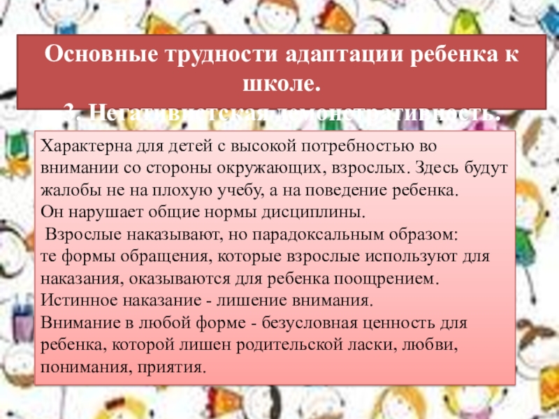 с высокой потребностью во внимании со стороны окружающих, взрослых. Здесь будут жалобы не на плохую учебу, а на поведение ребенка.