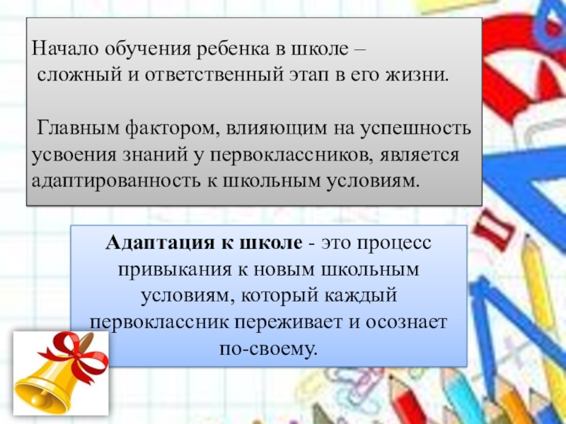 Адаптация к школе - это процесс привыкания к новым школьным условиям, который каждый первоклассник переживает и осознает по-своему.