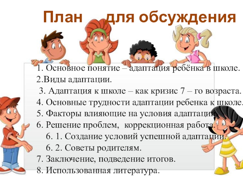 Слайд 19Основные трудности адаптации ребенка в школе.