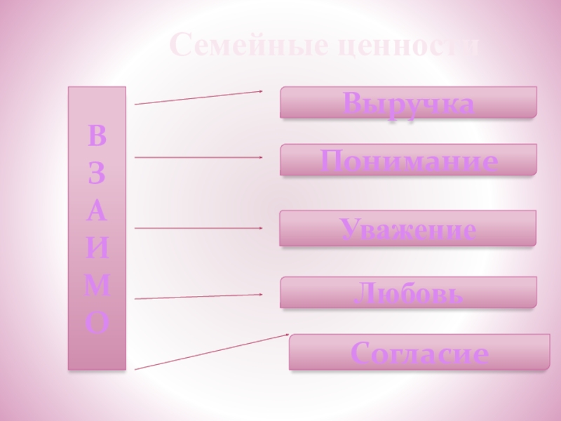 Семейные ценностиВЗАИМОВыручкаПониманиеУважениеЛюбовьСогласие