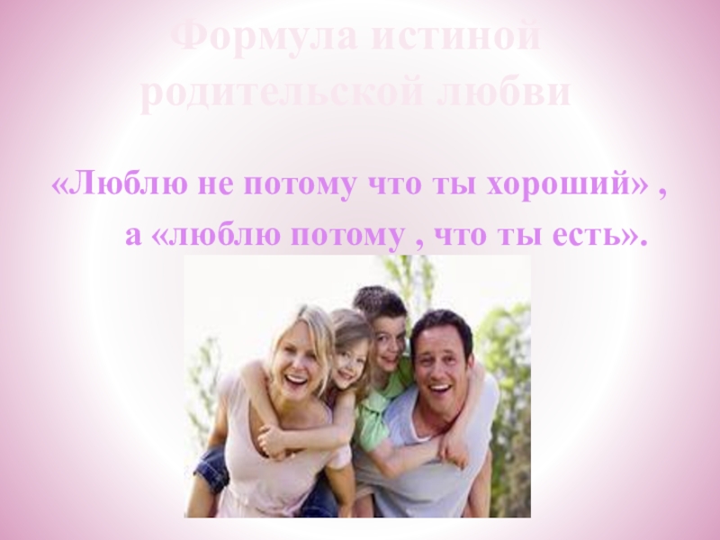 Формула истиной родительской любви«Люблю не потому что ты хороший» ,   а «люблю потому , что