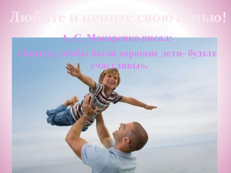 Любите и цените свою семью!А. С. Макаренко писал: «Хотите, чтобы были хорошие дети- будьте счастливы».