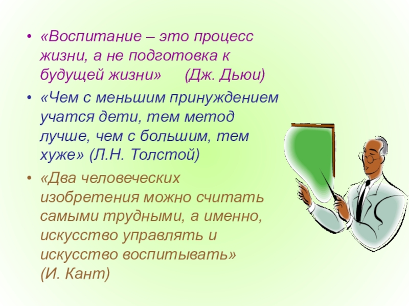 Слайд 3«Воспитание – это процесс жизни, а не подготовка к будущей жизни»