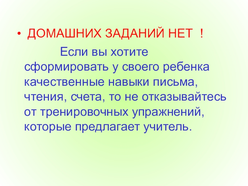 Слайд 20 ДОМАШНИХ ЗАДАНИЙ НЕТ !