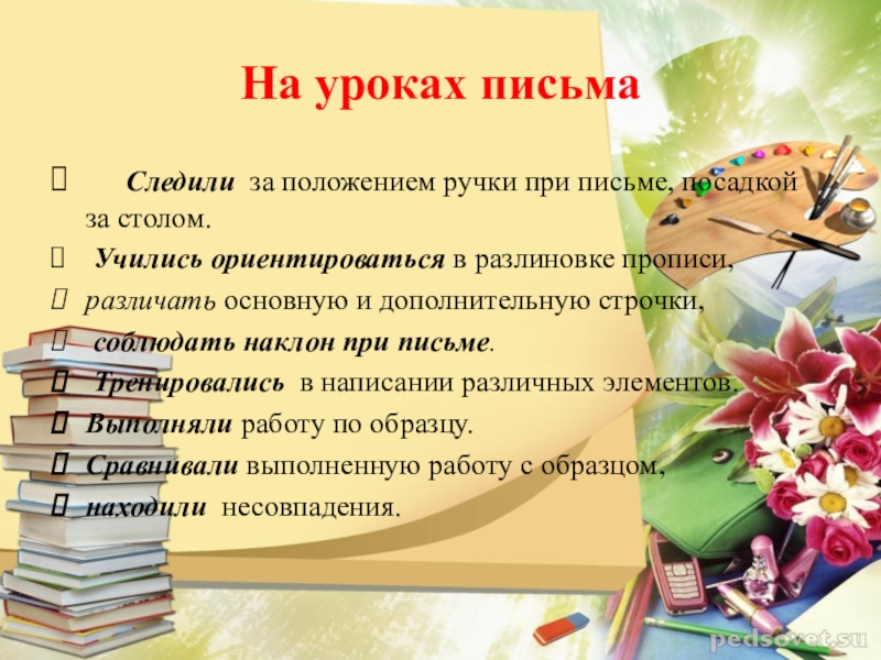 Слайд 12На уроках письма
