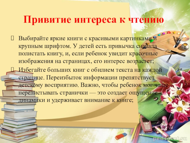 Слайд 7Привитие интереса к чтению