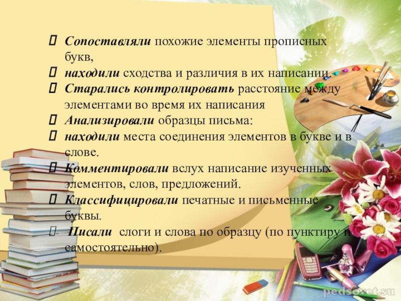 Слайд 13Сопоставляли похожие элементы прописных букв,