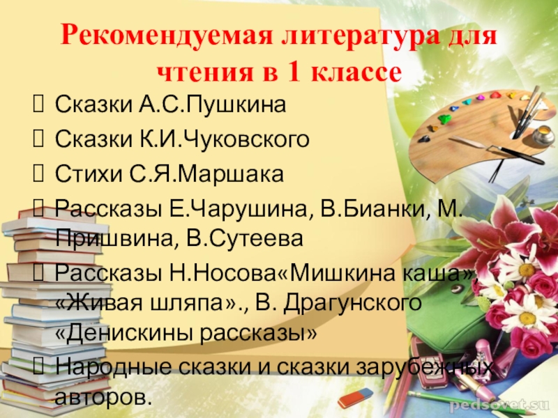 Слайд 10Рекомендуемая литература для чтения в 1 классе