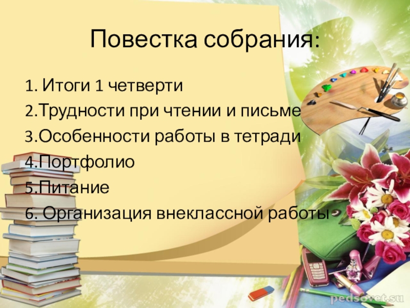 Слайд 2Повестка собрания: