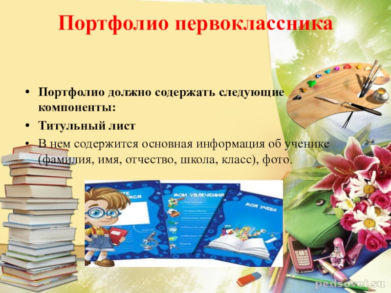 Слайд 25Портфолио первоклассника