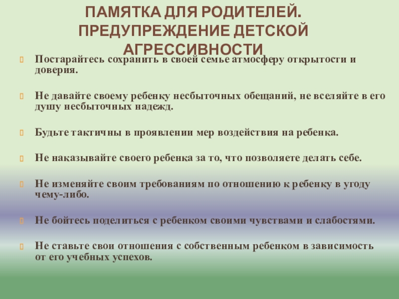 Будьте тактичны в проявлении мер воздействия на ребенка.