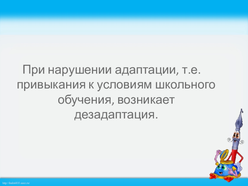 При нарушении адаптации, т.е. привыкания к условиям школьного обучения, возникает дезадаптация.