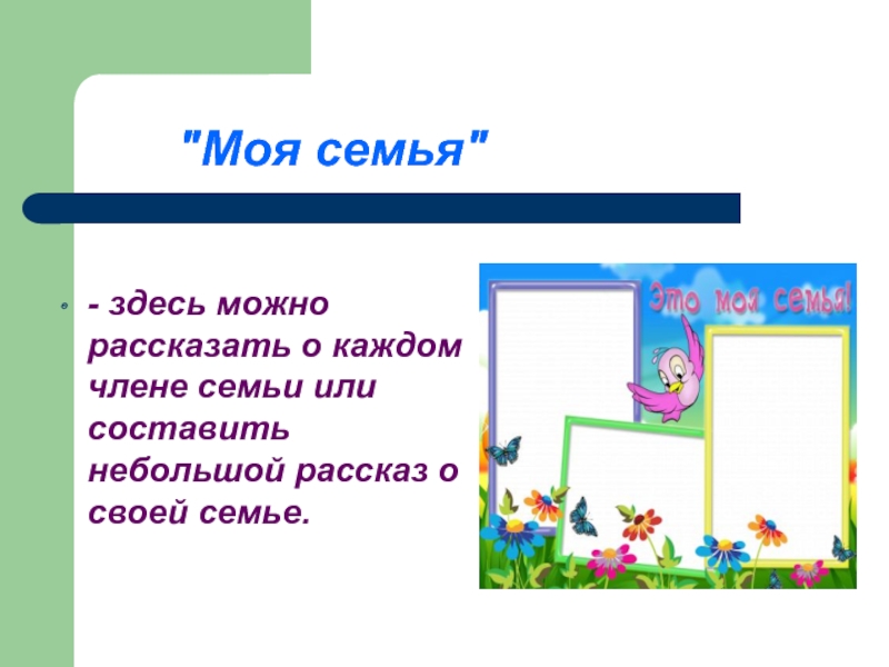 - здесь можно рассказать о каждом члене семьи или составить