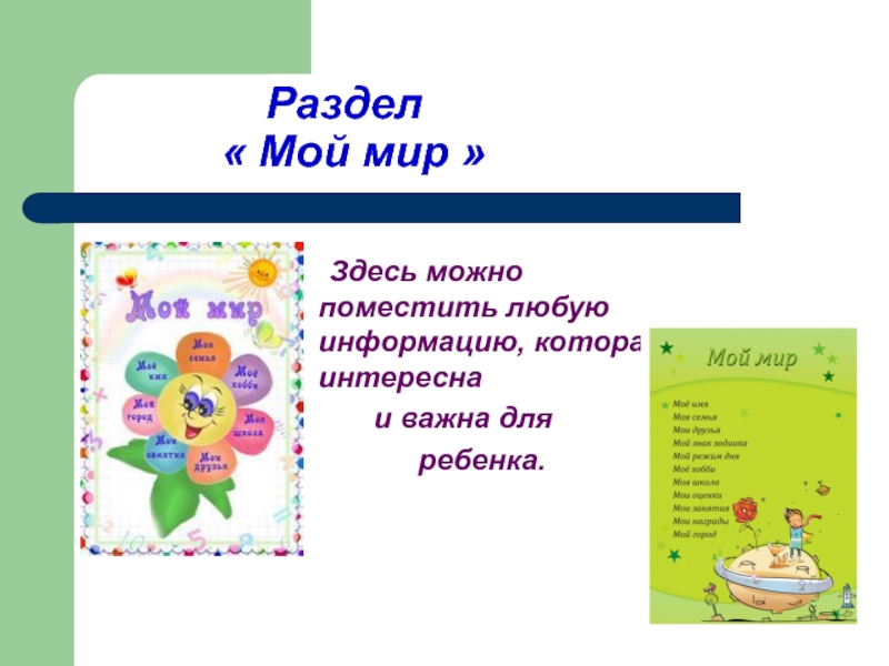 Родителям необходимо предоставить полную свободу ребенку при наполнении этого раздела!