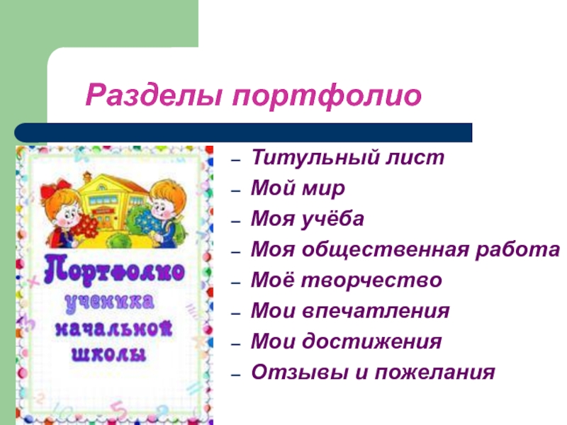 Слайд 2 Портфолио ученика –