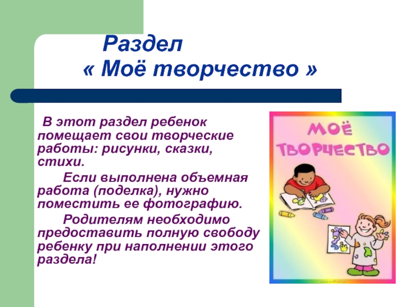 В этот раздел ребенок помещает свои творческие