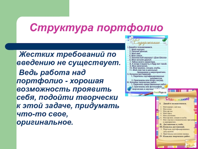 Слайд 7 Структура портфолио