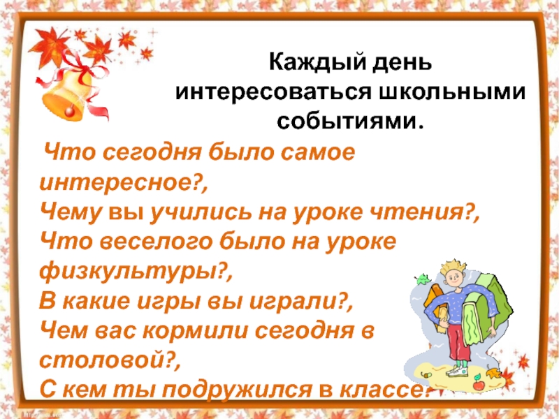 Оставьте за порогом школы ваши проблемы и плохое настроение.